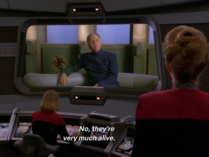 Ich finde diese Folge ziemlich langweilig und langatmig. Das Gefängnis-Szenario ist wie ihr schon sagt ausgelutscht und die vielen „Tropes“ von mit Messern bewaffneten Gefangenen über Aufstände bis zu verrückten Typen, die am Ende doch recht haben sind vorhersehbar. Es ist zwar eine Tom und Harry-Folge, aber die ganze Story ist dünner als Zeitungspapier. Ich erfahre nicht mal, wie sie eigentlich gefangen genommen und in das Gefängnis gebracht wurden. Das findet alles Off-Screen statt und wird in zwei Sätzen nachträglich abgehandelt. In Star Trek gibt es haufenweise Episoden, in denen Charaktere mir nichts dir nichts in irgendeine schlimme, bedrohliche Situation geworfen werden und sich zurechtfinden müssen. Die die Tom-unter-Anklage-Folge „Die Augen des Toten“, die Beltran-Eisenberg-Folge „Der Namenlose“, die Tom-Neelix-Vogelbaby-Folge „Der Höllenplanet“ und viele andere gehören auch dazu. Ich frage mich dann immer, warum es ausgerechnet diese Charaktere sein müssen, die das erleben. Die Plots wirken auf mich oft gekünstelt und hingebogen, um irgendeine wenig überzeugende Story zu erzählen, so ist es auch hier.